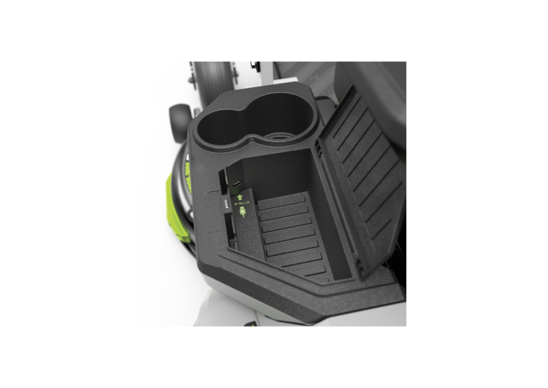 - A storage compartment with a slot for your mobile phone, which you can charge via the USB port while mowing.