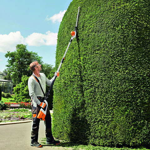 The STIHL HLA 86 telescopic hedge cutter is a versatile addition to the STIHL cordless range. The HLA 85 features an adjustable cutter which makes it suitable for a number of tasks on tall or deep hedges. With a total extended length of 3.3m it gives the operator a safer approach to taller hedges. The tool is lightweight and has very low vibrations making it suitable for professionals who would use the machine for extended periods. The brushless EC motor keeps maintenance to a minimum while increasing the tool’s running time