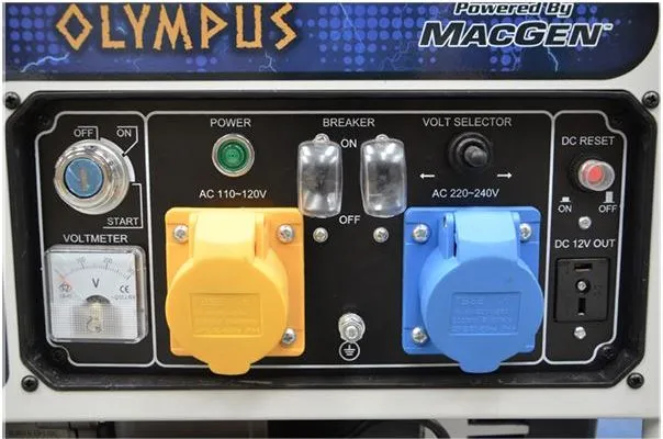 Engine: MacGen 7.5HP Stage V Petrol ? Max. Output: 4.4kVA / 3.5kW ? Rated Output: 4.0kW / 3.2KW ? AC output: 1x230V 16A / 1x110V 16A (Sockets) ? DC output: 12V / 8.3A ? Start: Key Start with Electric Ignition & AVR ? Fuel Tank: 15 Litre Long Run ? Running time: 8 Hours