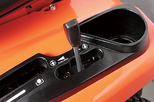 Ergonomically positioned to the left of the operator, the hydraulic mower lift lever provides simple and almost effortless lift/lower operations of the mower deck.