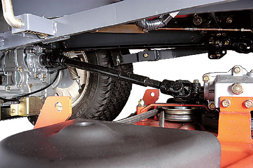Unlike a belt-drive transmission utilized in conventional mowers, our low-maintenance shaft-drive transmission provides reliable service, without the risk of a belt slip.