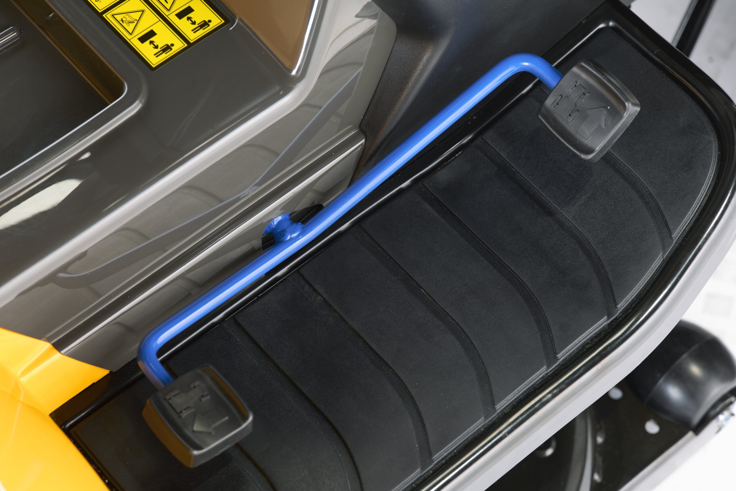 An intuitive dashboard features the battery power status and quick-press start button. A powerful 1.2kW transaxle motor lets you reach speeds of up to 9km/h, while two cutting blade motors totalling 3kW are free from belts, pulleys and expensive maintenance.