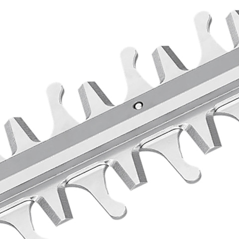 Lightweight cordless long-reach hedge trimmer for cutting taller hedges and shrubs in your garden. Double-sided blades in a droplet shape to help guide hedge material towards the cutters, adjustable head for cutting at angles ranging from -45° to +90°, detachable shaft for easy transport. Carrying length: 115 cm.