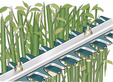 STIHL HEDGE TRIMMERS WITH DOUBLE-SIDED CUTTING BLADES CUT BOTH VERTICALLY AND HORIZONTALLY.