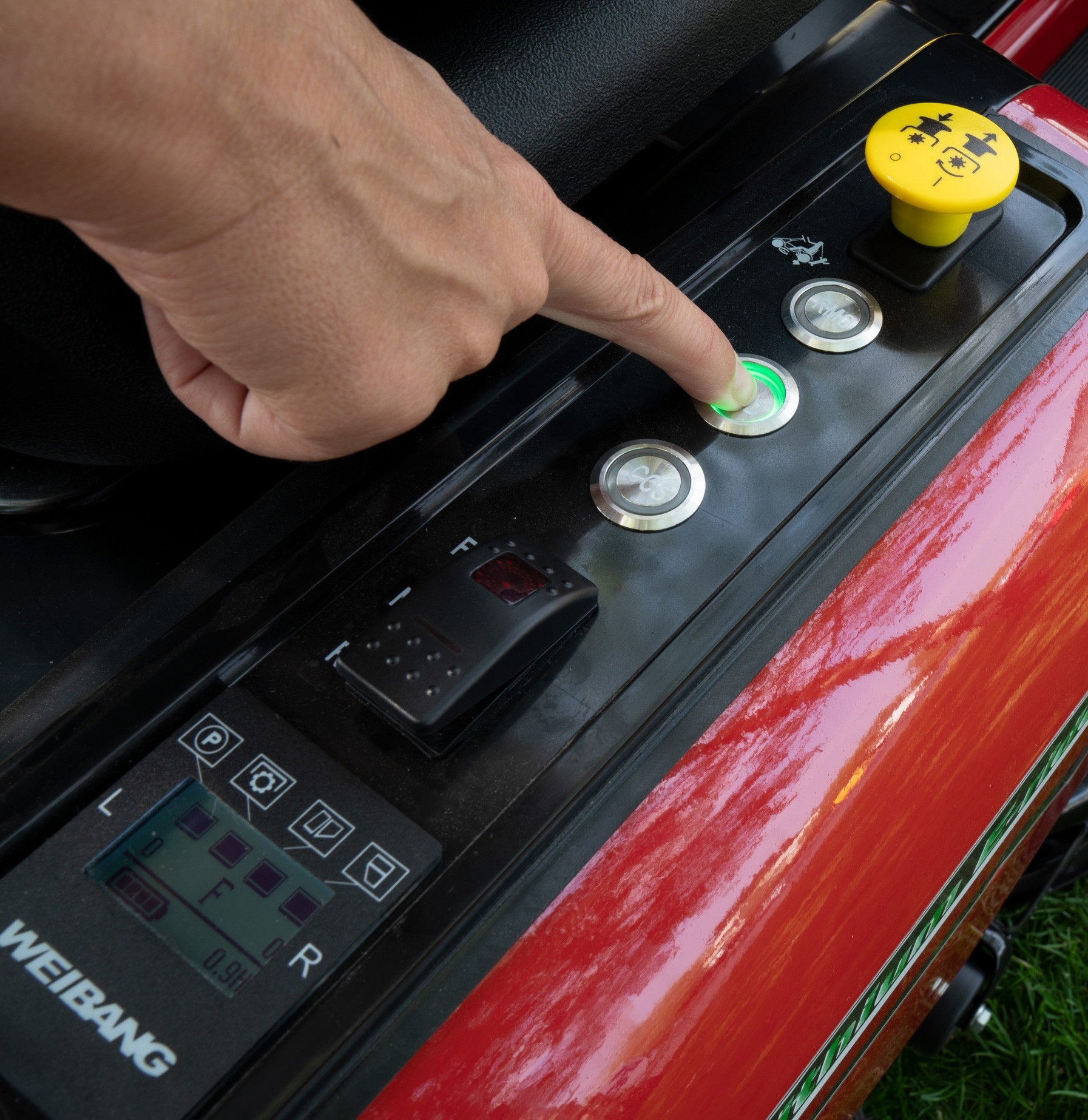 The battery used to power the iON 81 RC rider has been developed using the latest technologies and manufacturing processes available, ensuring that it is able to deliver the high performance expected from a Weibang machine. A single charge of the 72V / 31Ah battery can provide power for approximately 2.5 hours of mowing depending on the working conditions.